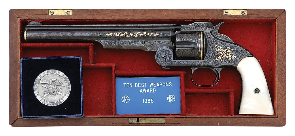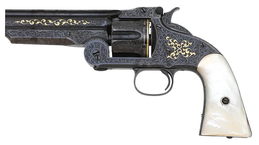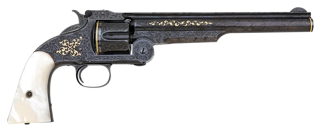 Fine Gustave Young Exhibition Engraved & Gold Inlaid Smith & Wesson No. 3 Second