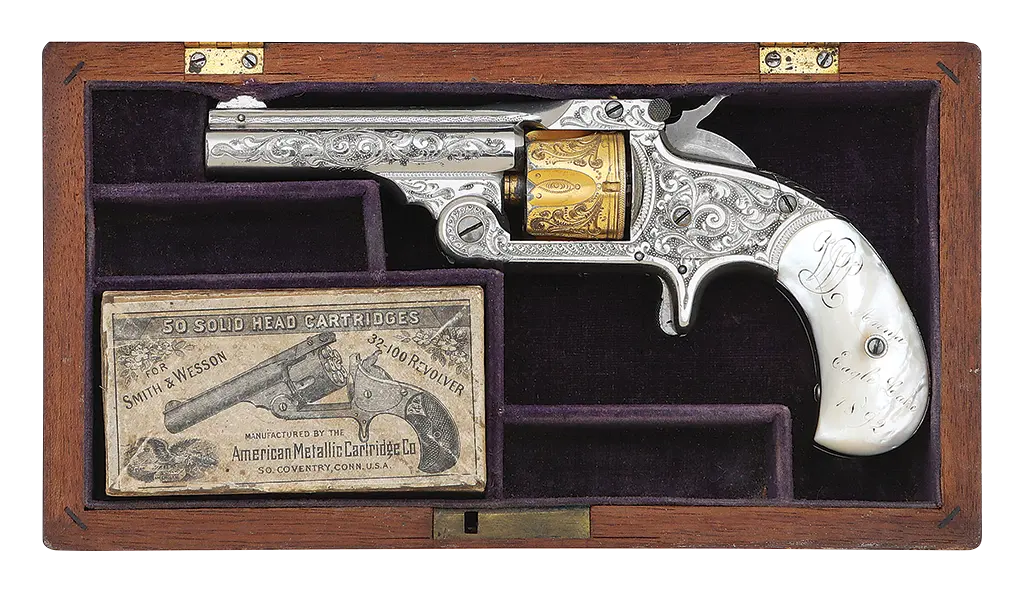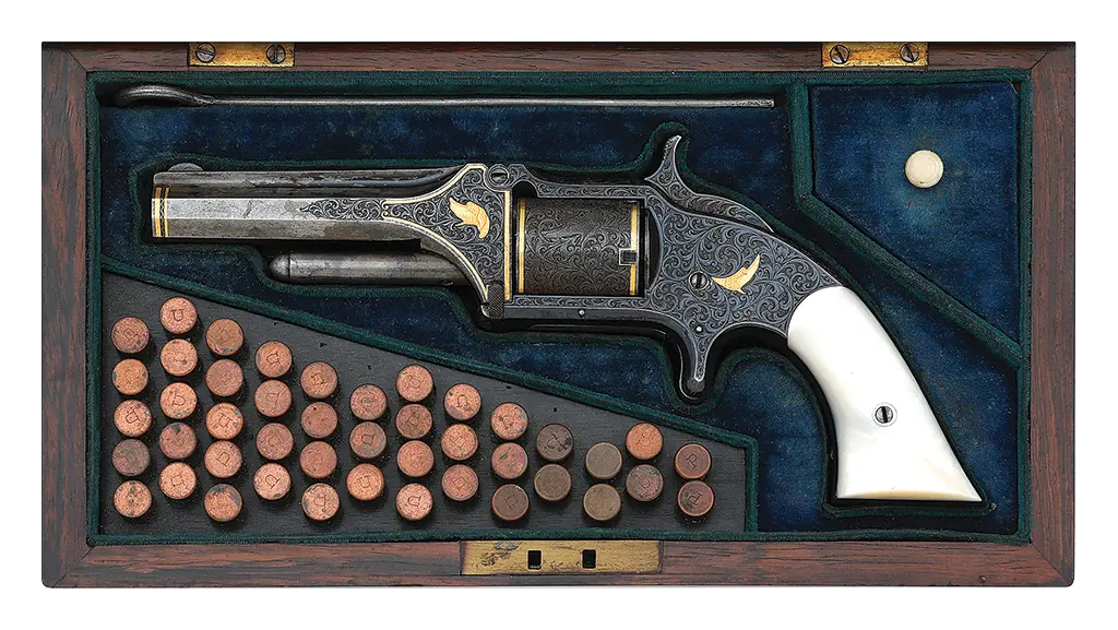 Stunning Deluxe Cased & Gustave Young Engraved & Gold Inlaid Smith & Wesson No. 1