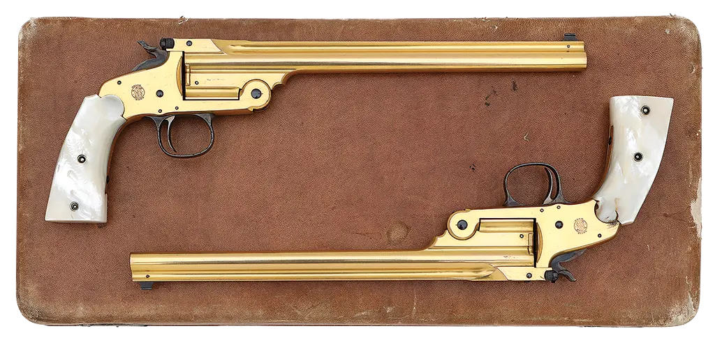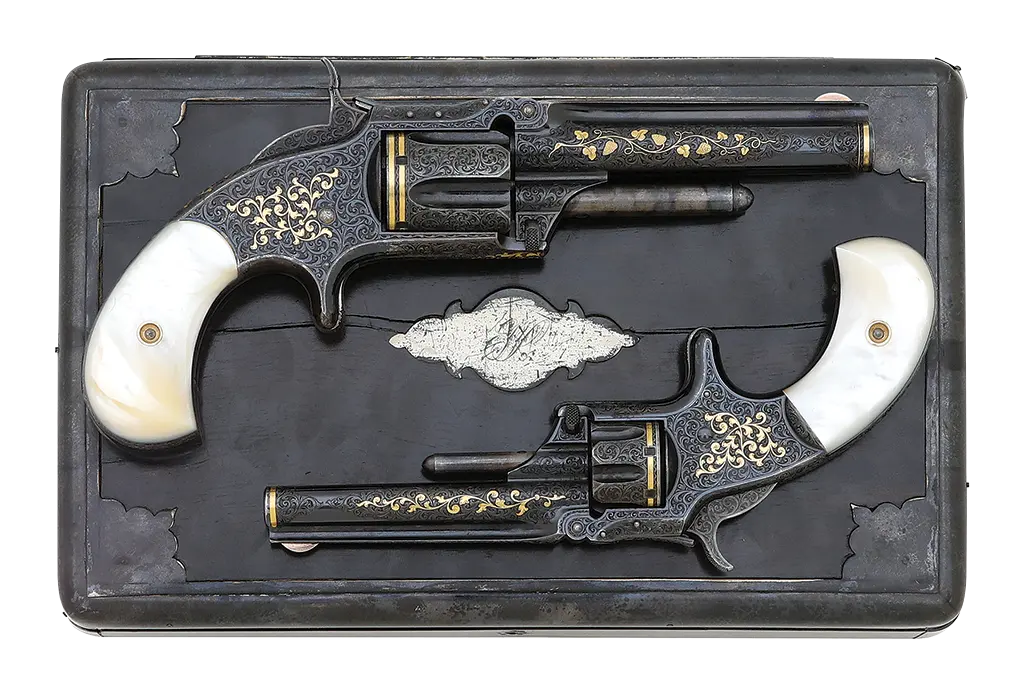 Spectacular & Important Pair of Gustave Young Engraved & Gold Inlaid Smith & Wesson