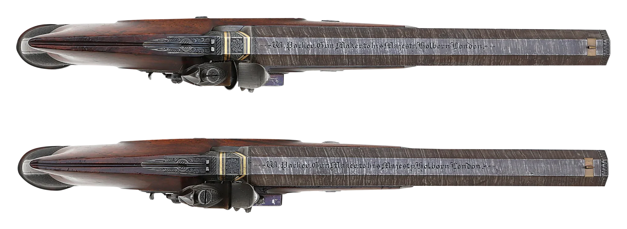 Excellent Pair of British Saw-Handle Flintlock Dueling Pistols by William Parker